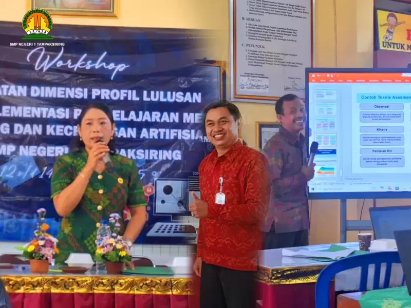 Tampaksiring, 15 Desember 2025 - Sebagai upaya peningkatan kualitas pembelajaran, SMP Negeri 1 Tampaksiring menyelenggarakan workshop yang bertema “Penguatan Dimensi Profil Lulusan Melalui Implementasi Pembelajaran Mendalam Koding dan Kecerdasan Artifisial” pada 12–14 Desember 2025. Kegiatan ini diikuti oleh seluruh guru dan menghadirkan pemateri dari Dinas Pendidikan Kabupaten Gianyar.