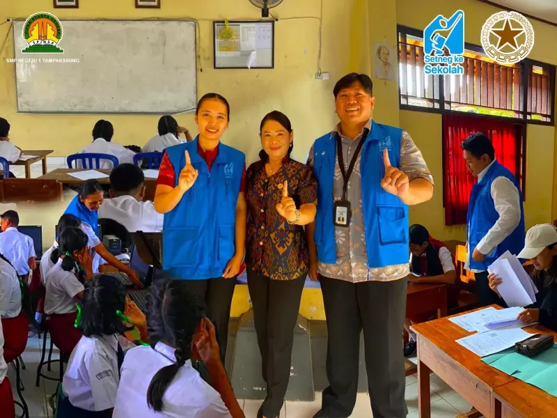 Tampaksiring, 20 Desember 2025 - Program Setneg ke Sekolah (SkS) telah selesai dilaksanakan di SMP Negeri 1 Tampaksiring. Sebagai salah satu inisiatif strategis Kementerian Sekretariat Negara dalam mendukung penguatan kualitas pendidikan nasional, program ini merupakan wujud nyata pengabdian dan kontribusi aktif terhadap program prioritas pemerintah dalam mencetak generasi bangsa yang unggul melalui sektor pendidikan. Setneg ke Sekolah merupakan bagian dari rangkaian Penguatan Kompetensi Dasar Terpadu (PKDT) di lingkungan Kementerian Sekretariat Negara yang dirancang untuk membentuk karakter, meningkatkan kapasitas, serta memperluas perspektif Calon Pegawai Negeri Sipil (CPNS) dalam menjalankan perannya sebagai Aparatur Sipil Negara yang profesional dan berorientasi pelayanan.