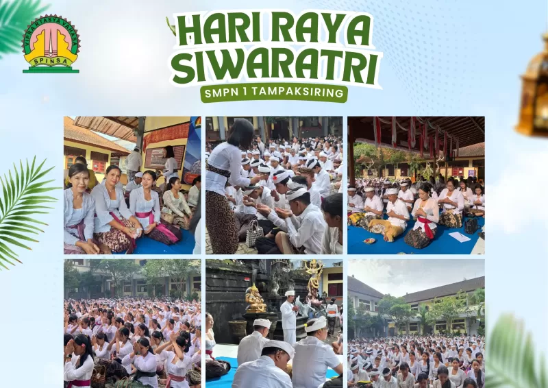 SMPN 1 Tampaksiring melaksanakan Persembahyangan Bersama Hari Raya Siwaratri pada Sabtu, 17 Januari 2026, yang bertempat di lingkungan sekolah. Kegiatan ini diikuti oleh seluruh peserta didik, guru, serta tenaga pegawai sebagai bentuk pembinaan spiritual dan penguatan nilai-nilai religius di lingkungan sekolah. Persembahyangan dimulai pada pukul 07.30 WITA dan berlangsung dengan khidmat dan tertib.
